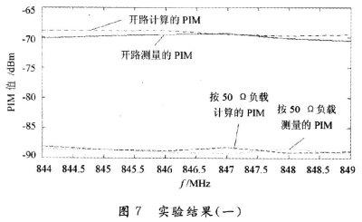 由以上的分析可知,這種計算方法計算出來的PIM值和真實的PIM值十分接近,并且隨頻率的變化趨勢一致。同時可以看出,在開路的時候所測量的 PIM明顯要比接負載的時候所測量的PIM要大,增大的PIM值是因為匹配不好所造成,當然,相同的負載狀況在不同的頻率下呈現的匹配狀態是不一樣的。
