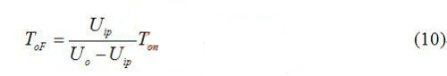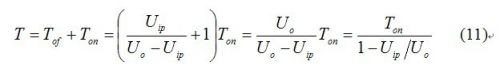 可見,輸出電壓Uo一定大于輸入電壓Uip,如果輸出電壓接近輸入電壓,在輸入電壓峰值附近截止時間遠大于導通時間,開關周期很長,即頻率很低。