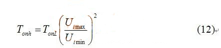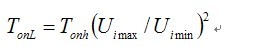 如果首先決定最低輸入電壓(Uimin)對應的導通時間為TonL,最高輸入電壓(Uimax)的導通時間為