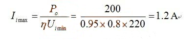 例:輸入220V±20%,輸出功率200W,采用臨界連續。假定效率為0.95.