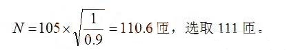 Nm1=(π(ID-0.5d’-0.05)/1.05d’)-1=96.9 實際96匝。