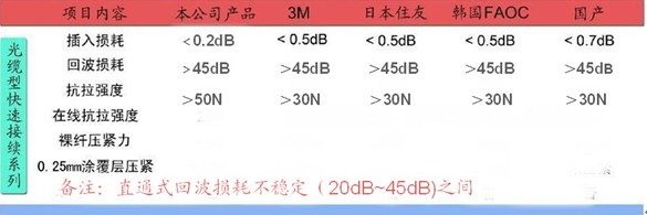 總之直通式光纖連接器對光纖直徑、對切割端面和切割長度要求嚴格,特別對夾持強度要求更加嚴格,一旦任何一處與產品沒有適配都將給信號的長期穩定性帶來極大的隱患。另外,因為回波損耗的參數完全依附于光纖切割端面的情況,因此產品的回波損耗指標對照差,故不適宜用于FTTH接入鏈路的規模使用。