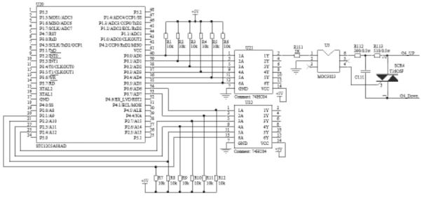 可控硅相控調光電路如圖3 所示。單片機的控制信號經74HC04反相后送到光耦MOC3023,光電隔離后輸入到可控硅T16C6F 的控制極,控制可控硅的導通角,實現調光。