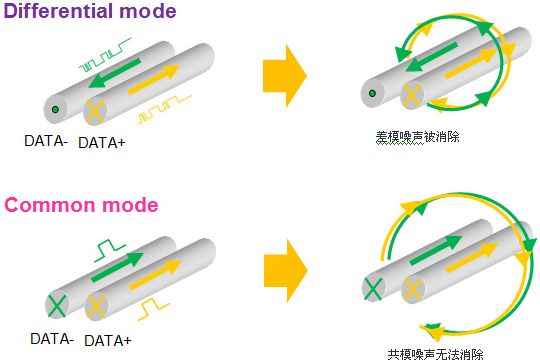 通過濾波器來消除差分傳輸信號線所產(chǎn)生的噪聲的同時,需要選擇具有高效靜噪性能,且不影響波形質(zhì)量的濾波器。在差分傳輸信號線靜噪處理中,使用共模扼流線圈將更加有效。共模扼流線圈對于差分信號不產(chǎn)生任何阻抗,但對于共模信號是一個很大的阻抗,可對過大的共模干擾電流進(jìn)行有效抑制。