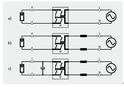 對于SMA逆變器,電容是橋的一部分。變壓器型逆變器的變壓器設置在橋的電網側,從而只能向電網提供交流電流(如Sunny Boy 5000TLHC和所有變壓器型逆變器)。