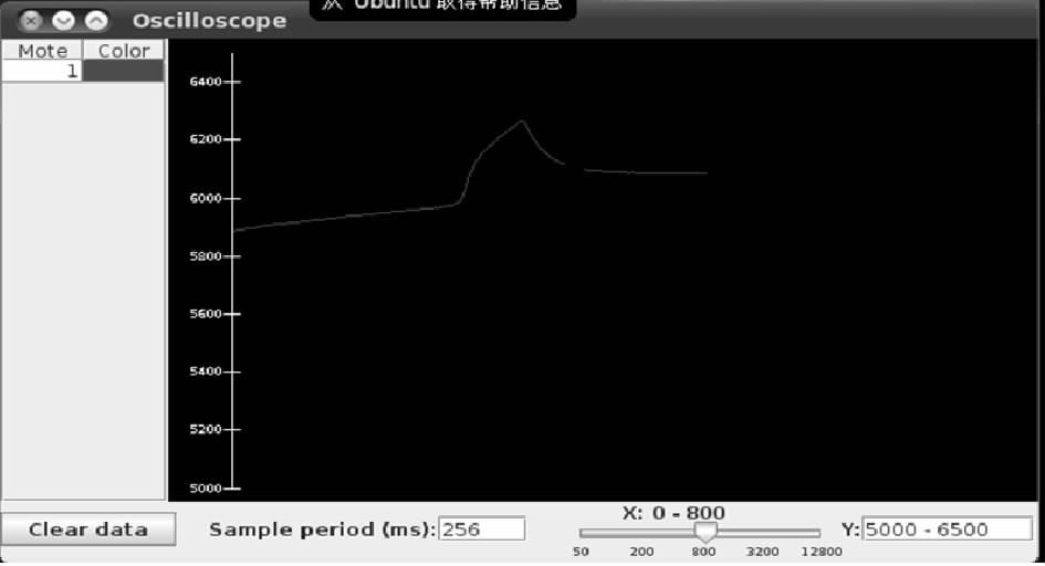 TinyOS是UC Berkeley開發的開放源代碼操作系統,專為嵌入式無線傳感器設計,操作系統基于構件的架構使得快速更新成為可能,而這又減小了受傳感器網絡存儲器限制的代碼長度。TinyOS的構件包括網絡協議、分布式服務器、傳感器驅動及數據識別工具。其良好的電源管理源于事件驅動執行模型,該模型也允許時序安排具有靈活性。因此對于整個無線傳感器網絡的驗證采用TinyOS操作系統,設計為兩個節點,節點A負責采集溫度濕度數據,然后將采集到的數據發送到另一個節點B,節點B接收到數據后,通過USB將數據傳輸到個人電腦,并將該數據通過圖表顯示,如圖10所示。