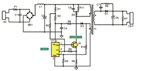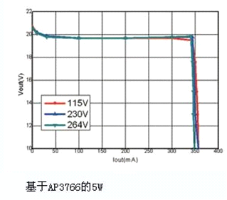 2. AP3766采用專有的“亞微安啟動電流”技術(shù),僅需0.6μA的啟動電流,因此降低了啟動電阻R1和R2上的功耗,提高了系統(tǒng)效率。典型5W應用效率大于80%,空載功耗小于30mW。