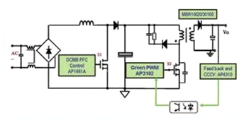 在更大功率應用條件下,單級PFC電路難以同時兼顧PFC預調(diào)整和反激電路輸出恒流調(diào)整性能,這時需要采用兩級電路架構(gòu)實現(xiàn)這一目標。因此,有新推出的PFC+PWM 兩級架構(gòu)電路拓撲方案,該方案電路原理圖如圖9所示。