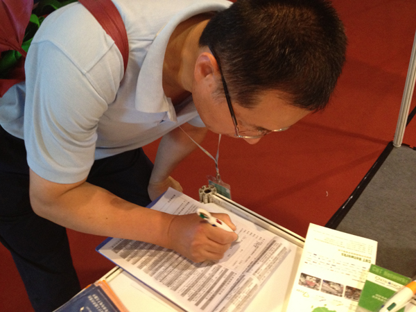 1、我們派出2名專業(yè)發(fā)行人員佩戴醒目的EP飄帶在展位和展覽館發(fā)送和接待觀眾,主動派發(fā)和收取信息查詢表格。