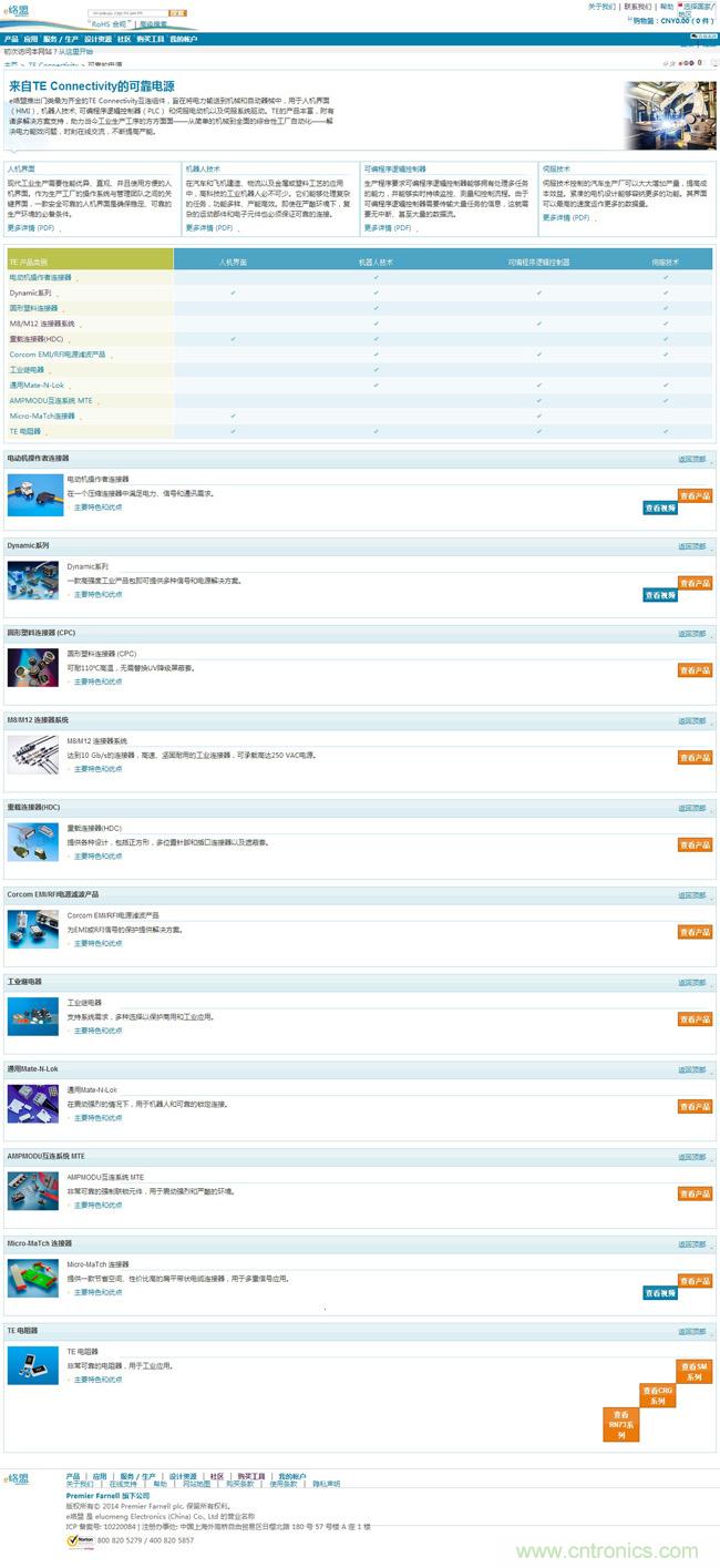 e絡盟子站還為客戶提供一款產品導航器,使他們能夠根據各自的獨特設計需求和應用難點快速購得所需的特定系列TE產品,如Dynamic系列、M8/M12連接器系統、重載連接器、工業繼電器及AMPMODU MTE連接器等。