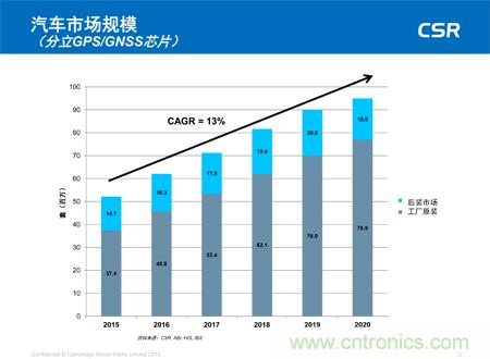 汽車市場(chǎng)規(guī)模(分立GPS/GNSS芯片)