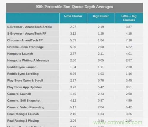 首先,測試人員挑選了一些比較常見的任務,包括在Hangouts中編輯信息、刷新網(wǎng)站、打開攝像頭、在Google Play商店安裝應用、玩游戲等等。測試的目標很簡單,是核心越多越好、還是核心主頻越高越好。就像許多八核處理器一樣,內置的Cortex-A57核心負責處理那些要求比較高的任務,而Cortex-A53則負責那些更平常的任務。測試團隊未來將對更多的處理器進行測試,比如聯(lián)發(fā)科Helio X10這樣配備了八個A53s核心的十核處理器。