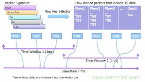 硬件仿真的標(biāo)志之一是,它能對(duì)大型復(fù)雜系統(tǒng)進(jìn)行復(fù)雜性能分析。某些情況下,可能需要數(shù)百萬(wàn)個(gè)數(shù)據(jù)包才能切中當(dāng)前設(shè)計(jì)中穩(wěn)態(tài)分析的要點(diǎn)。以測(cè)量百萬(wàn)兆以太網(wǎng)交換機(jī)的流量比特率為例。可以采用虛擬以太網(wǎng)簽名生成和數(shù)據(jù)包時(shí)間戳 (TS) 來計(jì)算這些測(cè)量。