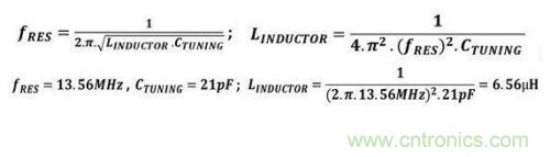 式1. PCB上集成的外部天線電感(LINDUCTOR)必須與標簽的內部調諧電容(CTUNING)相匹配,使電路諧振點為13.56MHz。