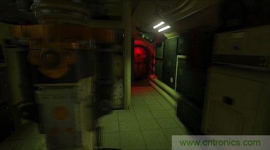 位置抖動是基于方向的Timewarp帶來明顯瑕疵之一。在使用VR設備時,當頭部移動了, 如果在ATW產生圖像幀時只考慮了旋轉,而平移卻被忽略了。這意味著當你的頭從一邊移動到另一邊時,你看見的離你很近的物體會有多個圖像的抖動,這種效果在臨近場空間中是非常明顯的,比如下面的這個潛艇截圖。