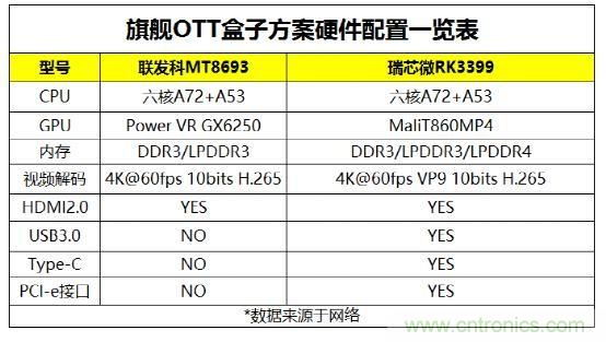 超高規(guī)CPU與GPU,可秒殺目前市場主流的海思Hi3798、海思3798C V200、全志H8、晶晨S905、聯(lián)發(fā)科MT8693等產(chǎn)品。而性能與RK3399差距不算太大的晶晨S912,目前量產(chǎn)時間仍待定,因此在整體盒子芯片環(huán)境中,RK3399目前尚無對手。