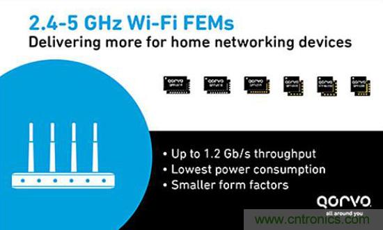 【導(dǎo)讀】Qorvo, Inc.今天宣布,引進(jìn)新的5 GHz和2.4 GHz Wi-Fi前端模塊(FEM)系列,為更小、更節(jié)能的無線路由器、網(wǎng)關(guān)和其他家居聯(lián)網(wǎng)設(shè)備鋪平道路。七款新的FEM支持高帶寬輸出,兼顧低功耗、小尺寸和最大可靠覆蓋范圍。
