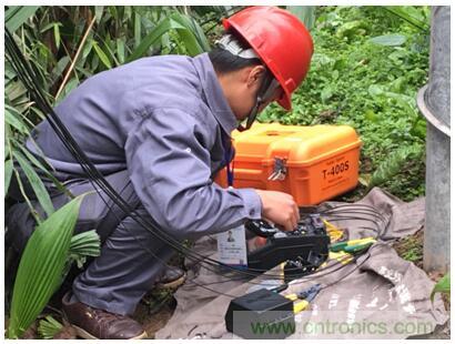 野外現場——第一時間趕到現場,通過住友電工T-400S熔接機快速接續線路,保障網絡暢通