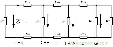圖 3為CTM1051M推薦的組網拓撲,我們要考慮總線電阻,終端電阻,發送點,接收點電壓參數。畫出其等效電路如圖 4所示。