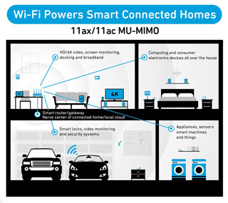 802.11ax將大幅提高網絡容量,支持多達8個同步數據流,每個數據流速率最高為1.2 Gbps,從而能以更高速度連接更多設備。Qorvo豐富的802.11ax 產品組合包括2.4GHz和5GHz前端模塊(FEM)及BAW濾波器。該產品組合中的高能效FEM減少了與支持Wi-Fi設備中多路輸入多路輸出(MIMO)相關的散熱問題,使制造商得以壓縮產品尺寸和成本。Qorvo BAW帶緣和共存濾波器可改善Wi-Fi服務質量,防止相鄰LTE頻率干擾。
