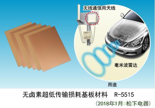 【導讀】 松下電器產業株式會社汽車電子和機電系統公司開發出了適用于毫米波段[1] 天線基板的“無鹵素超低傳輸損耗基板材料(型號∶R-5515)”,并計劃于2019年4月開始量產。用熱固性樹脂實現毫米波段中的行業最高(※1)的低傳輸損耗[2],為天線的高效率化、低損耗化、及降低基板的加工成本做出貢獻。