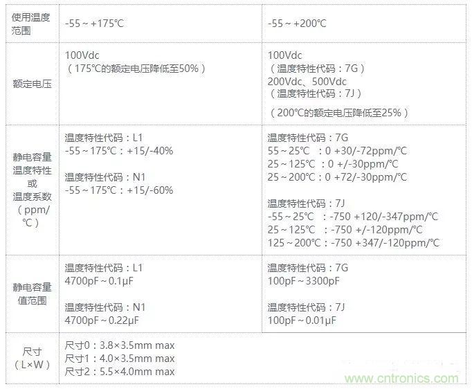 以改善汽車燃費為目的,動力傳動控制系統通過DC發動機驅動增加控制。為了抑制該DC電機發生的電氣噪聲使用電容器。汽車的控制設備在過于嚴酷的溫度環境下使用,有可能會出現短時間接近200℃的高溫。用于此種環境下的電容器要求具有高耐熱性。該系列使用新研發的高耐熱樹脂來涂層高耐熱多層陶瓷電容器,實現最高使用溫度200℃。截止到目前為止額定電壓200Vdc、500Vdc時,容量值最大0.01μF,此次新增了支持175℃、200℃的100Vdc產品,實現了小型化和容量值擴大至0.1μF。今后,將致力于面向安裝在引擎艙等高溫環境內的設備擴銷。