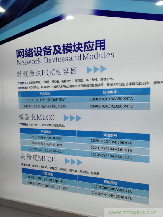 在展區(qū),宇陽科技展示了各種應(yīng)用的電容,如網(wǎng)路設(shè)備及模塊應(yīng)用射頻微波HQC電容器、手機應(yīng)用中超微型MLCC、用于安防產(chǎn)品高溫型MLCC、用于汽車電子應(yīng)用中的高容MLCC等。