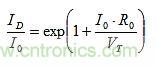 實際的電流比因指數函數而要求R0兩端的電壓不要大于VT。對于I0 = 2mA,R0 = 22Ω,VT = 26 mV,R0兩端的電壓為44mV或1.69xVT,ID = 14.77xI0 = 29.5mA,大于多數設計所需的值。為了使R0不在發(fā)射結電路中占主導地位,需要R0為這樣的小值,以便能表示VBE的TC。然而在許多設計中,R0相對較大,且其壓降遠遠超過VT。因此,re的TC%(VT)沒有得到正確補償,增益中存在TC漂移。