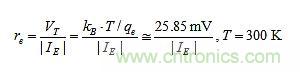 在rM中最麻煩的一項是re,因為它隨著溫度和發(fā)射極電流IE而變化,根據: