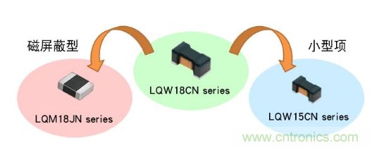 LQW15CN系列是LQW18CN系列的小型產品。此外還提供磁屏蔽型LQM18JN系列新產品。