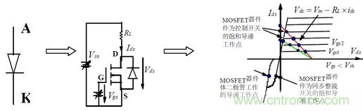 即內(nèi)部二極管的等效電路,可用一電壓降等效,此二極管為MOSFET 的體二極管,多數(shù)情況下,因其特性很差,要避免使用。