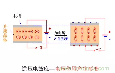 對具有壓電特性的介質材料施加電壓,則產生機械應力,發生形變。