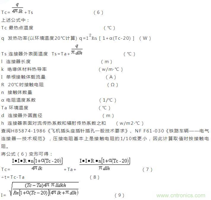 依據熱力學熱傳導、熱對流、熱輻射理論,整理出電連接器最熱點溫度計算公式: