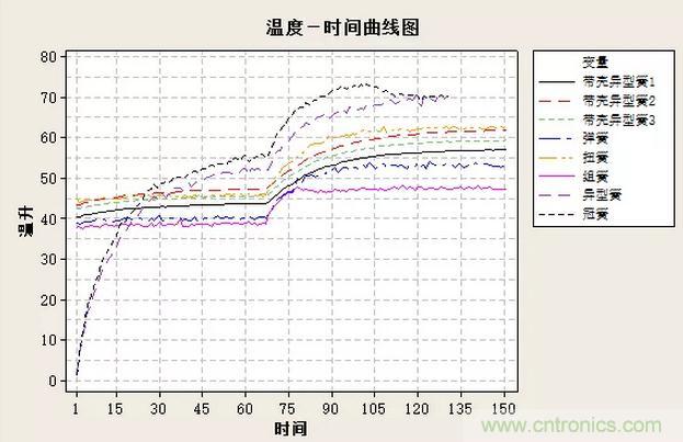 圖1:不同結構接觸體溫升曲線