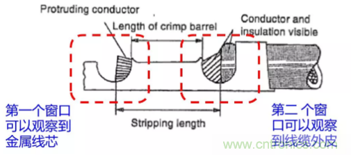 插入時(shí)要留意長短深度。線纜插入過短容易導(dǎo)致端接達(dá)不到規(guī)定的拉拔力,因?yàn)榫€纜與端子之間的金屬間接觸減少了;而線纜插入過深則會縮短連接器的使用壽命。以車針壓接為例,當(dāng)?shù)谝粋€(gè)窗口可以觀察到金屬線芯,第二個(gè)窗口可以觀察到線纜外皮時(shí),表示線芯的位置是剛好的。