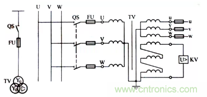 角形,構成零序電壓過濾器,供給監視線路絕緣的電壓繼電器。
