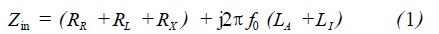 式中,RR為輻射電阻;RL為環(huán)型導(dǎo)體損耗電阻;RX為額外歐姆損耗電阻;LA為環(huán)型天線(xiàn)電感;L1為環(huán)型導(dǎo)體電感。
