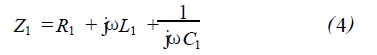 圖4中,閱讀器的發(fā)送器出口產(chǎn)生高頻電壓u2,接收器直接與天線(xiàn)線(xiàn)圈L1連接。串聯(lián)諧振電路的總阻抗Z1為各項(xiàng)單阻抗之和,即: