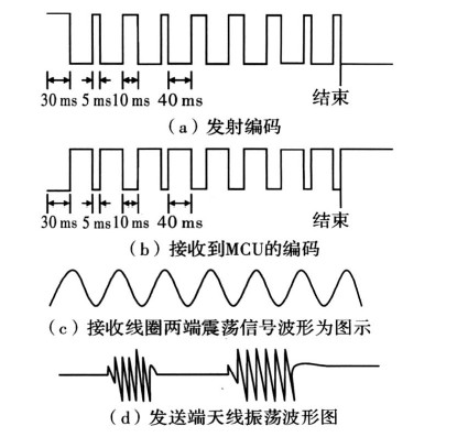 本系統(tǒng)的閱讀器可在6cm范圍內(nèi)識(shí)別應(yīng)答器的有無(wú),若有應(yīng)答器在監(jiān)測(cè)范圍內(nèi),則給出明確的指示并讀取應(yīng)答器預(yù)設(shè)的4位編碼,然后顯示;另外,應(yīng)答器部分還可以通過(guò)開(kāi)關(guān)設(shè)置4位編碼在閱讀器識(shí)別范圍內(nèi)送出編碼信號(hào)。同時(shí)閱讀器還具有對(duì)應(yīng)答器的編碼進(jìn)行寫(xiě)入的功能,由應(yīng)答器接收并儲(chǔ)存。設(shè)計(jì)中重點(diǎn)是保證正確率,可以從軟件上增加校驗(yàn)碼來(lái)提高無(wú)線(xiàn)傳輸?shù)目煽柯省?/p>