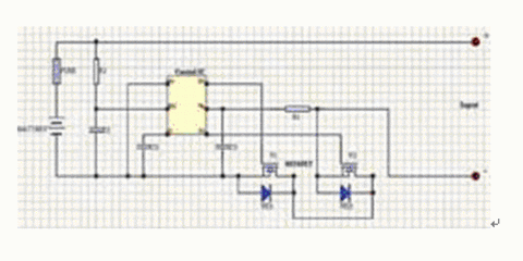 ---此保護回路由兩個MOSFET和一個控制IC外加一些阻容元件構成。控制IC負責監測電池電壓,并控制兩個MOSFET的柵極,MOSFET在電路中起開關作用,分別控制著充電回路與放電回路的導通與關斷,fuse為熔斷器起二級保護,C2為延時電容,該電路具有過充電保護、過放電保護、過電流保護與短路保護等功能。
