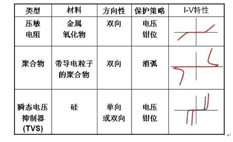 安森美半導體來自美國的ESD保護專家Robert Ashton博士說,一般而言,ESD保護元件的分類可以通過其保護策略與方向性來進行,主要包括壓敏電阻、聚合物和瞬態電壓抑 制器(TVS)等,如表1所示。在這幾種保護元件中,壓敏電阻在低電壓時,呈現出高電阻,其中的每個小型二極管兩端的電壓都相當低,同時電流也相當小;而在較高電壓時,其中的獨立二極管開始導通,同時壓敏電阻的電阻會下降。從表1中我們也可以看出壓敏電阻為雙向保護元件。而對于帶導電粒子的聚合物而言,在正常電壓下,這些材料擁有相當高的電阻,但當發生ESD沖擊時,導電粒子間的小間隙會成為突波音隙陣列,從而帶來低電阻路徑。