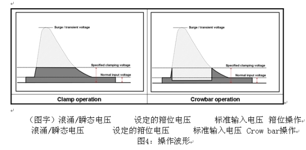 這些測試中Vishay的大功率硅TVS的箝位電壓低于37 V,滿足汽車應用穩壓器對37 V至40 V的最大輸入電壓范圍的要求。