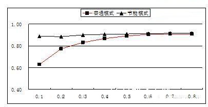 針對電源部分的損耗,戶外電源的工作模式和室內電源是一樣的,正常情況下為均流工作模式。市電正常時模塊負載率較低,電源系統大多數沒有工作在系統最佳效率區間,因此可以采用電源模塊休眠技術根據系統負載狀態,動態調整工作模塊數量,使系統始終工作在最佳效率區間,從而降低系統的能耗。圖1表示了電源系統在普通工作模式下和節能模式下的系統典型效率比較。從圖1可看出,采用休眠節能模式,電源系統的效率在整個負載范圍內基本保持不變,有效的降低了電源系統在低負載條件下的能耗。另一方面,對于戶外電源來說,電源系統效率提高會降低設備倉的發熱量,降低設備倉的溫度。