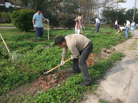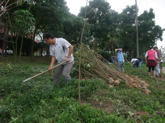 參加此次植樹活動的除了檳城電子的全體員工外,還邀請了檳城的代理商和供應商參加??偣?00多人,共分成了4個植樹小分隊。在蔡總的帶領下,我們拿著植樹的工具,拉著小樹苗,迎著春天的暖風,到了自己的領地。大家的勢頭都很足,精神抖擻,各個都掄起鐵鍬鋤頭,為小樹苗挖樹坑。