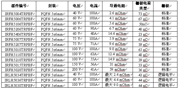 國(guó)際整流器公司 (International Rectifier,簡(jiǎn)稱 IR) 拓展了 HEXFET功率 MOSFET 產(chǎn)品組合,提供完整的中壓器件系列,它們采用了5x6 mm PQFN封裝及優(yōu)化銅夾和焊接芯片技術(shù)。