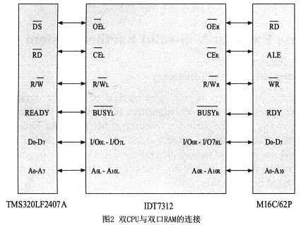 由于系統采用雙CPU,為了實現兩個CPU之間大量數據的快速交換,本裝置采用雙口RAM來實現兩CPU之間快速的數據交換。
