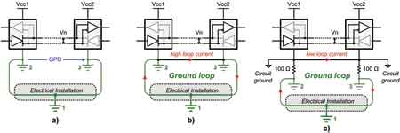 就僅限于一個本地電源供電的電路而言,GPD不會導致什么問題。在設計兩個遠程電路間的通信鏈路時(即現場總線-收發器站),GPD就變得引人關注了,這兩個遠程電路間的通信鏈路由不同的電源供電。