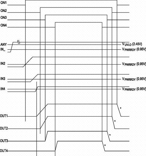 順序上電模式則根據設計者的要求,順序打開/關閉每一個通道。如果出現故障情況,則所有通道會被同時關閉,圖4是順序上電模式時序圖。