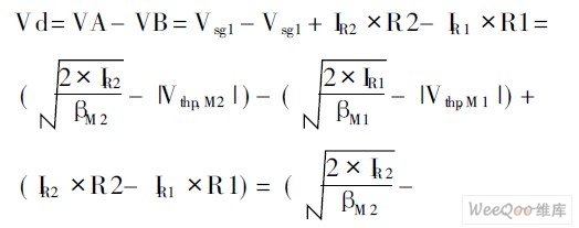 那么利用PMOS的飽和區(qū)電流公式可得M1與M2的具體尺寸。為使此時(shí)電壓比較器A1性能更佳,設(shè)定VB為VDD的一半,可求出R2阻值,再根據(jù)公式(2)得到的電阻比例,便可得到R1阻值。