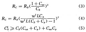 圖1到圖2所示的并聯電容Cp總是存在的。因為電感線圈匝間電容是不可避免的,每個電感均有其自電容,把這個自電容等效為并聯的電容Cp,且認為是無耗的,則總的調諧電容值升高。如果CS足夠大,可以忽略他的影響,則得到有效調諧電容為: